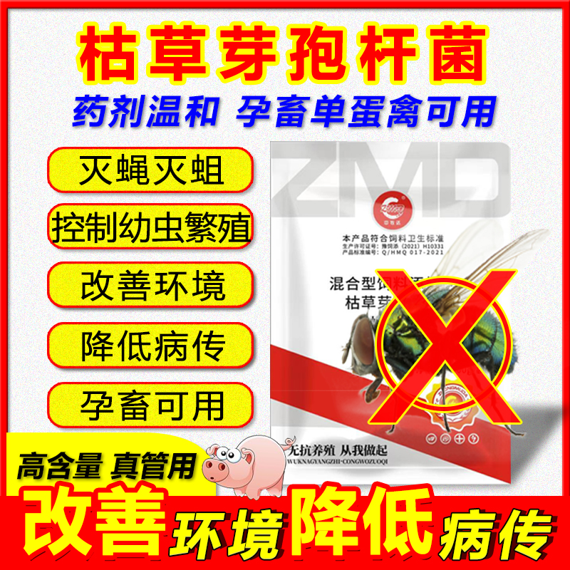 【用法用量】苍蝇滋生季节开始使用,每1000kg饲料添加本品500克,混合均匀后饲喂,连续喂服4-6周,间隔3-6周,在连续喂服4-6周。以此方法在苍蝇繁殖季节多次使用